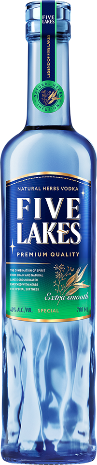 Сбор натуральных трав, мягкая вода и 100% зерновой спирт образуют идеальный баланс легкого и свежего вкуса. «Five Lakes Special» является прямым воплощением сильного характера и чистоты природы.